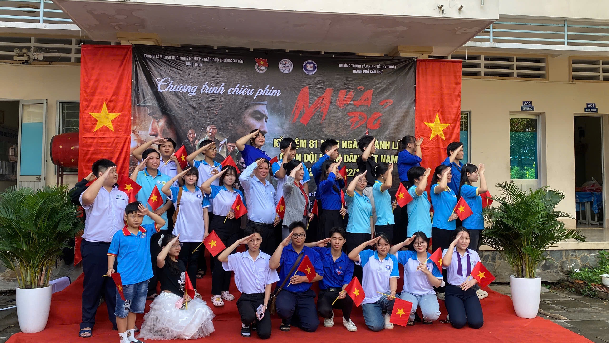 Ngày đăng: 02:49 21/12/2025 | Tóm tắt: Nhân dịp kỷ niệm 81 năm Ngày thành lập Quân đội Nhân dân Việt Nam (22/12/1944 – 22/12/2025), Trường Trung cấp Kinh tế – Kỹ thuật TP. Cần Thơ phối hợp cùng Trung tâm GDTX Bình Thủy và Viettel tổ chức chuyến xem phim “Mưa Đỏ” dành cho cán bộ, giáo viên và học viên nhà trường.
